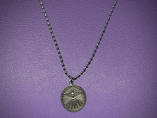 Holy Spirit Round Medal, Pray for Us, Silver Oxidized Die Cast Patron Saint Medals, Guidance and Enlightenment Medal, Catholic Gift