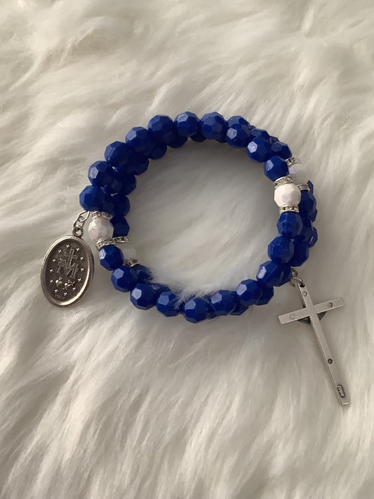 Miraculous Medal Blue and White Wrap Rosary Bracelet
