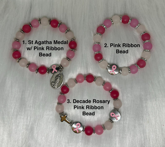 Pink Ombre Breast Cancer Awareness Decade Rosary Bracelet