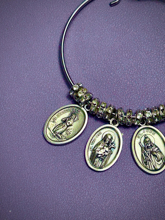 Courage & Faith Bangle Bracelet for Cancer Patient – Saints Rita, Bernadette, Therese, Jude, and Peregrine