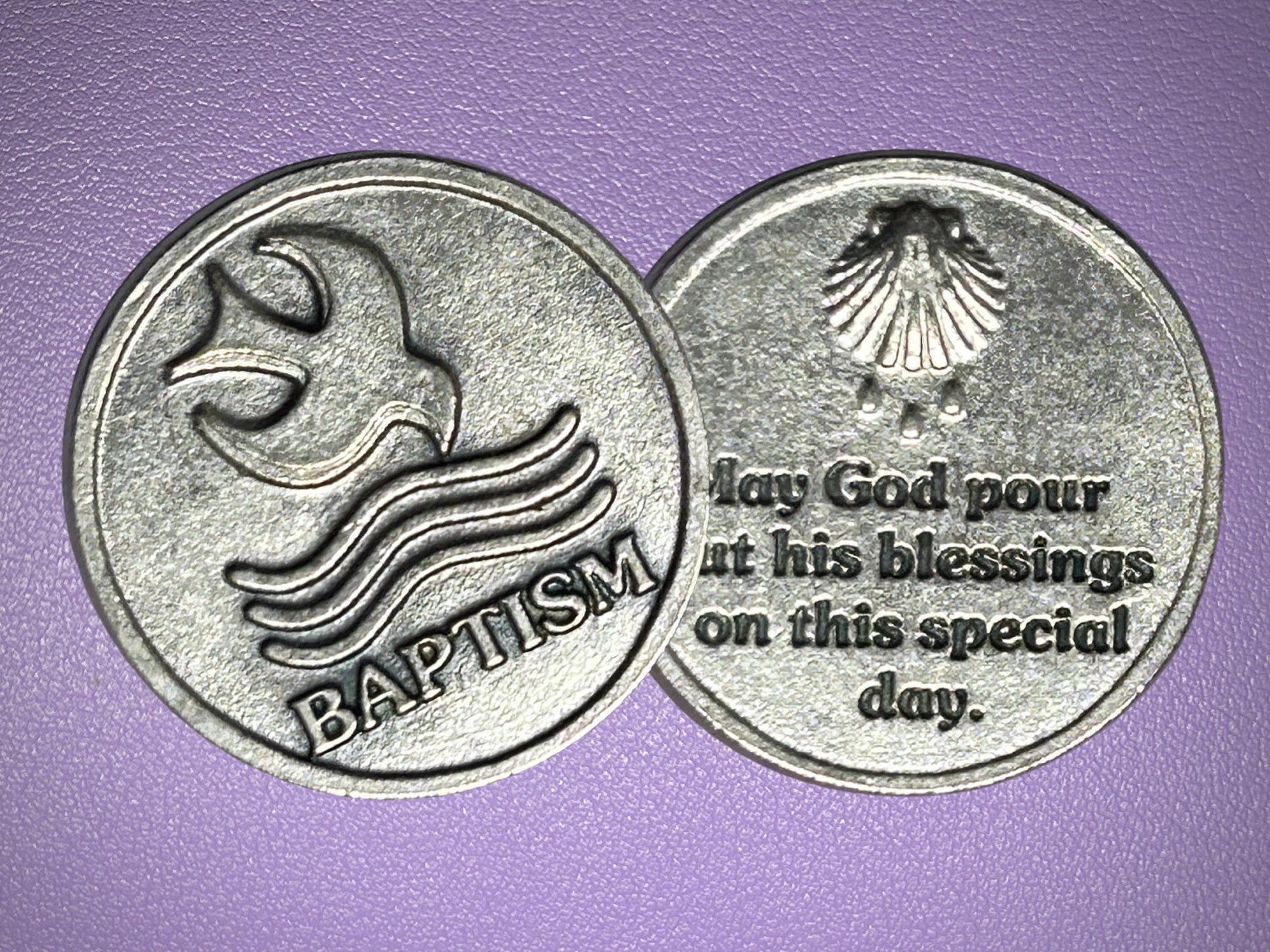 Baptism is a sacred sacrament in the Christian faith, marking the initiation into the Church and the cleansing of original sin. It's a joyous occasion that celebrates the beginning of a spiritual journey and the welcoming into a community of faith. This pocket token is a reminder of the divine blessings and the promises made during the sacrament of Baptism.