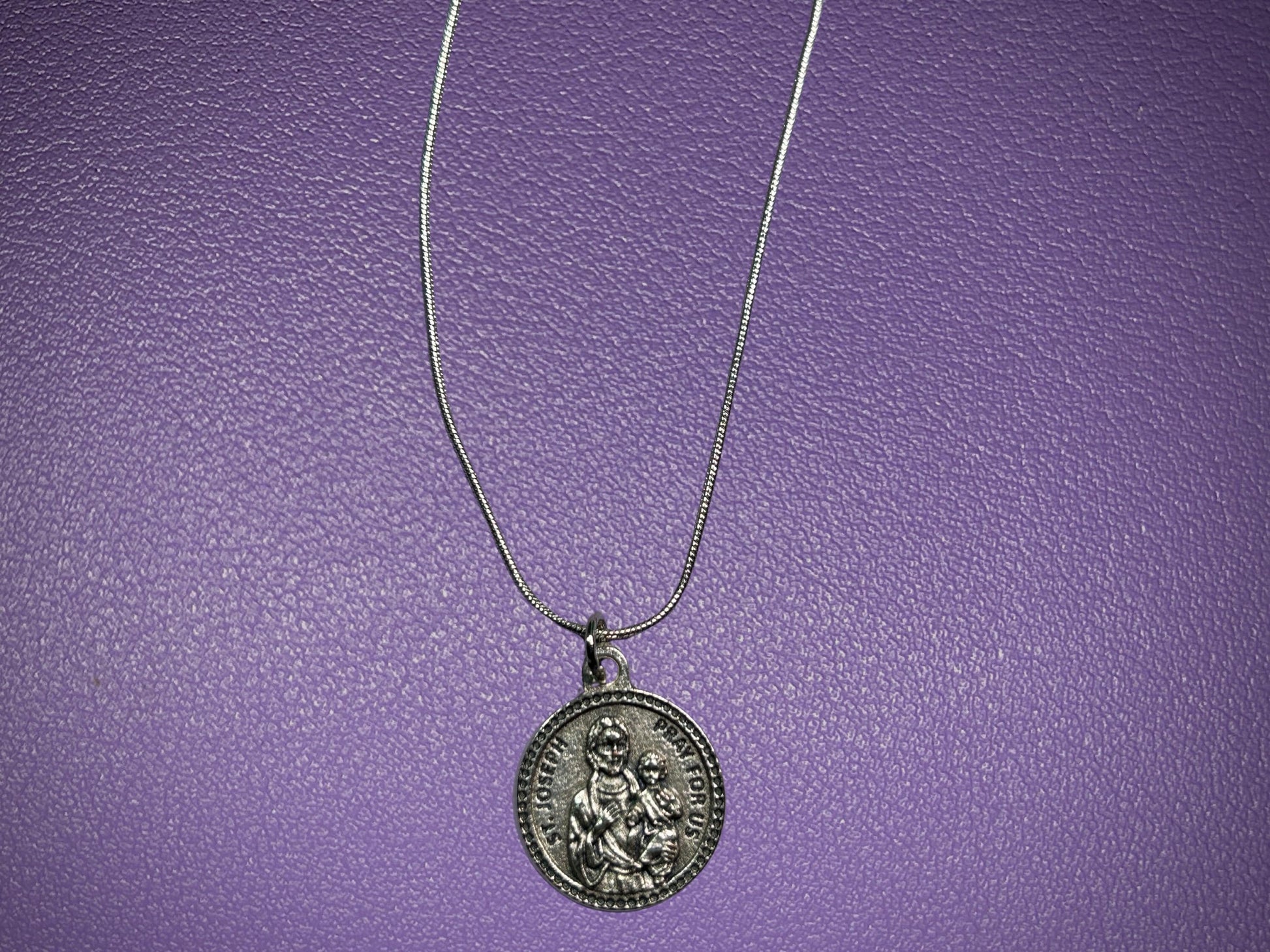 Celebrate the strength, humility, and faith of the earthly father of Jesus with this beautifully crafted 1” silver oxidized St. Joseph medal. Known as the Patron Saint of Fathers, Families, Workers, and the Universal Church, St. Joseph is a powerful intercessor for anyone seeking strength, peace, and purpose in their daily work and family life.