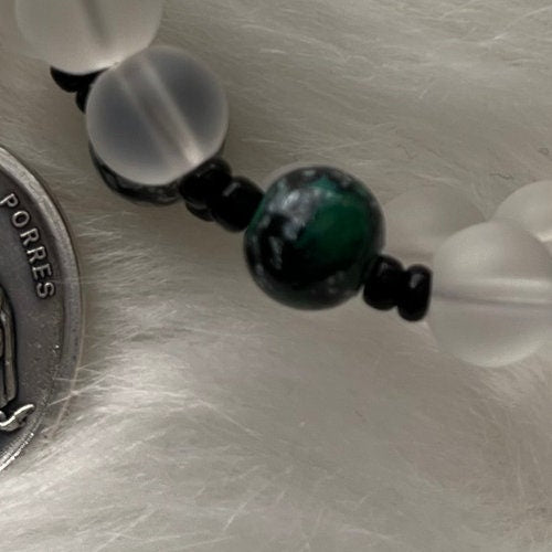 Patron Saint wrap bracelet (St Martin de Porres with black green beads). Choose your patron Saint and bead color. Rosaries make wonderful gifts for birthdays, holidays, confirmation, or any occasion.