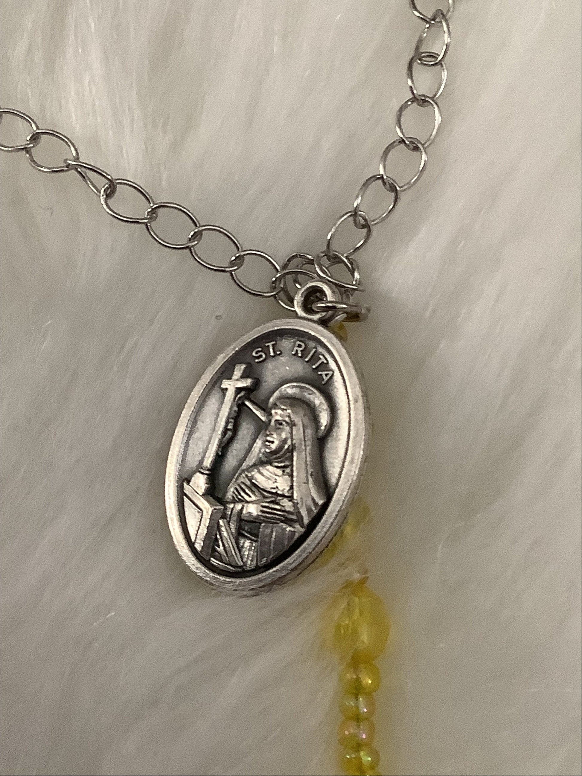 Looking for a powerful intercessor in time of need? Look no further than St. Rita, the patron saint of difficult, impossible causes and emergencies! This beautiful chaplet is made with 6mm faceted acrylic beads in a vibrant yellow. The yellow beads symbolize the resurrection of Christ, renewal, joy, and hope. When you need a miracle, say this chaplet and know that St. Rita is interceding for you!
